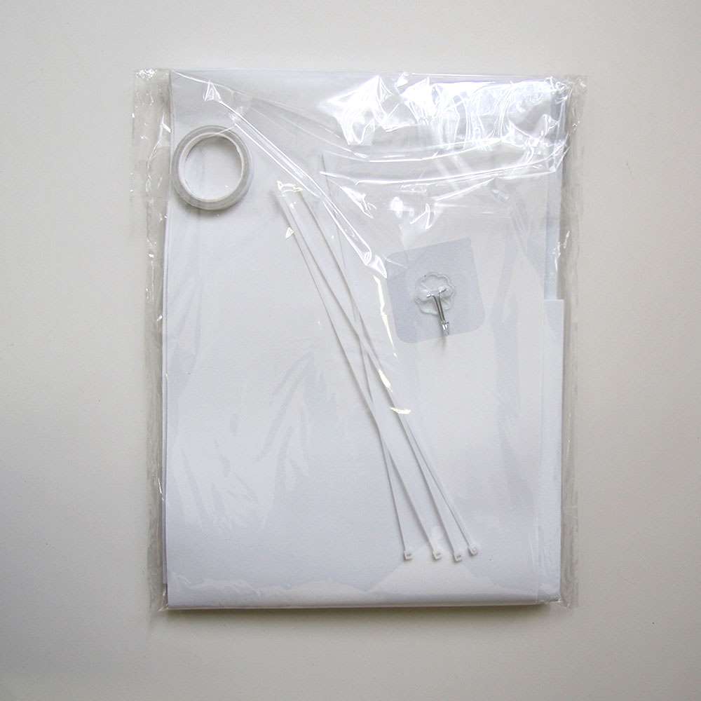 Комплектация: 3 листа, 2 декоратичные полоски, связующая нить, скотч, 4 зажима и крючок