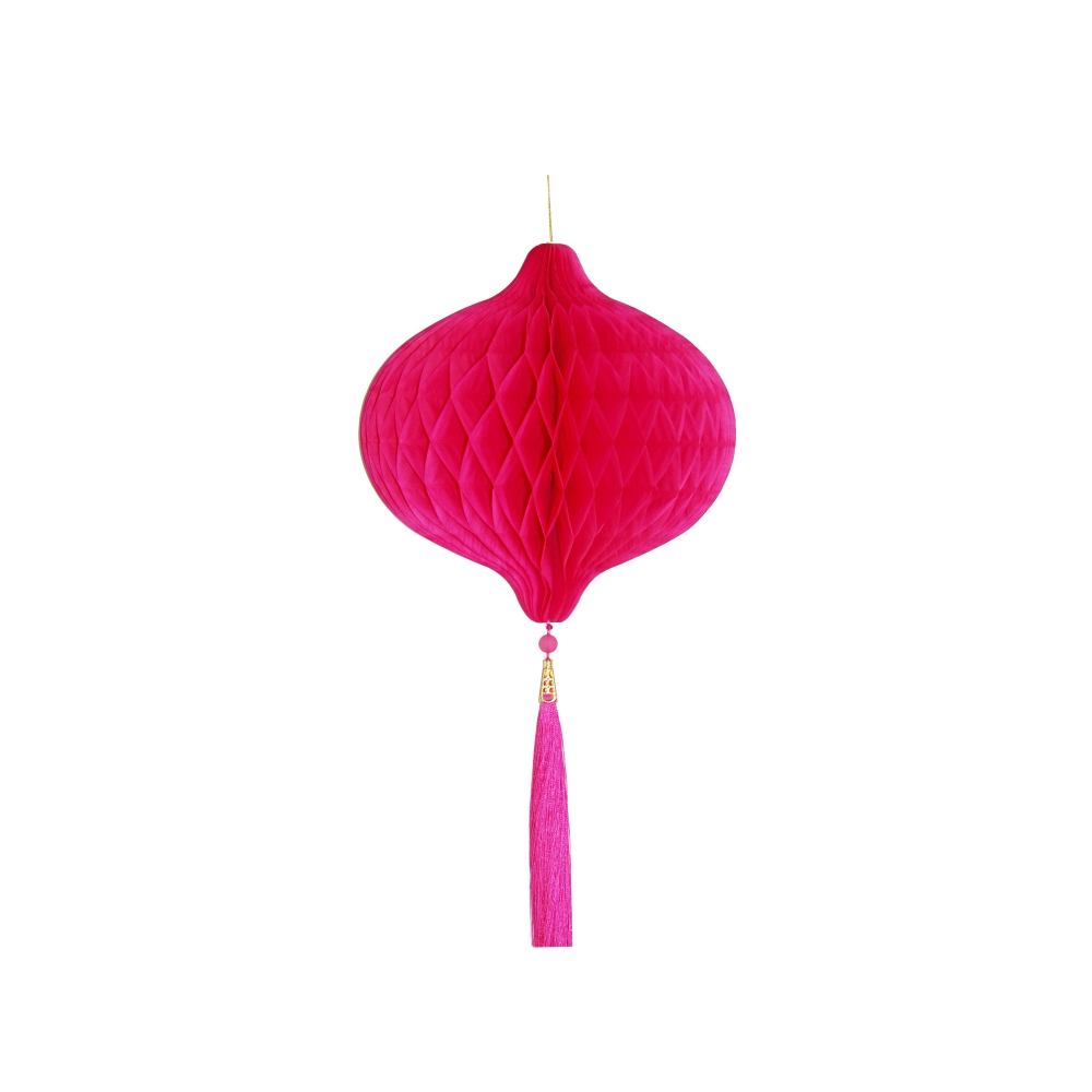 Бумажное украшение Шар-соты с кисточкой, малиновый - 1шт.