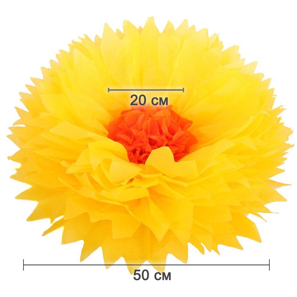 Бумажный цветок 50 см ярко-желтый+оранжевый