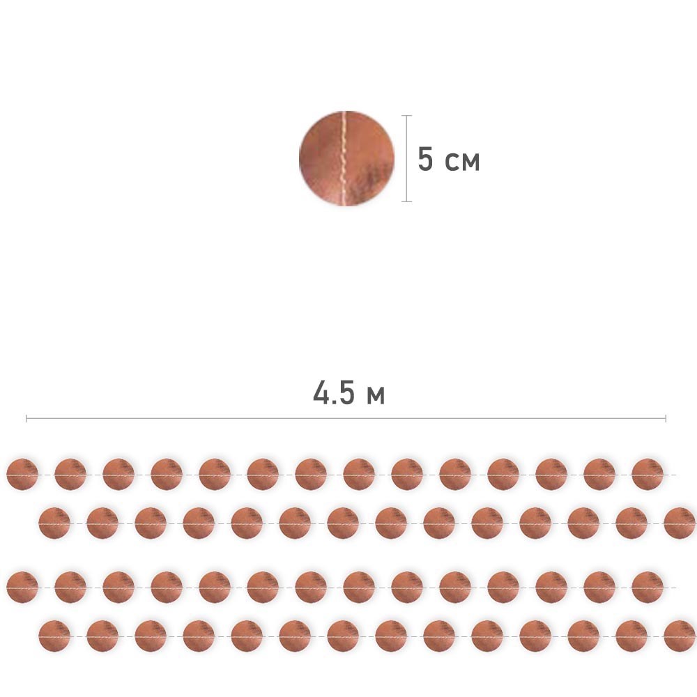 Гирлянда "Кружочки" металлик 5 см х 4,5 м, Розовое Золото