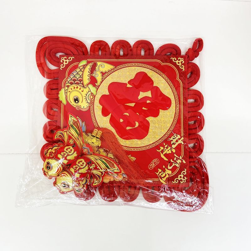 Традиционный китайский узел в форме ромба с символичным дизайном. Яркое сочетание красного бархата и золотых элементов создает эффектный акцент в интерьере.