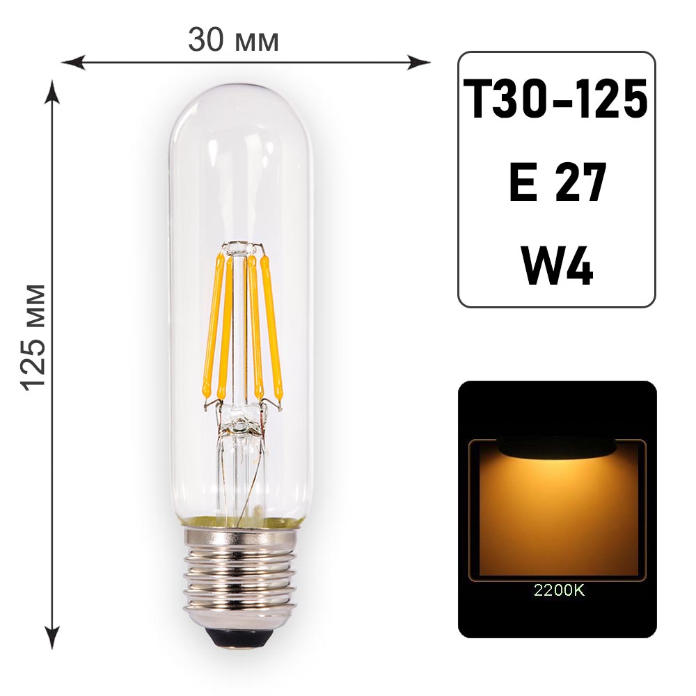 Лампа филаментная Т30 - 125 E27 W4 K2200