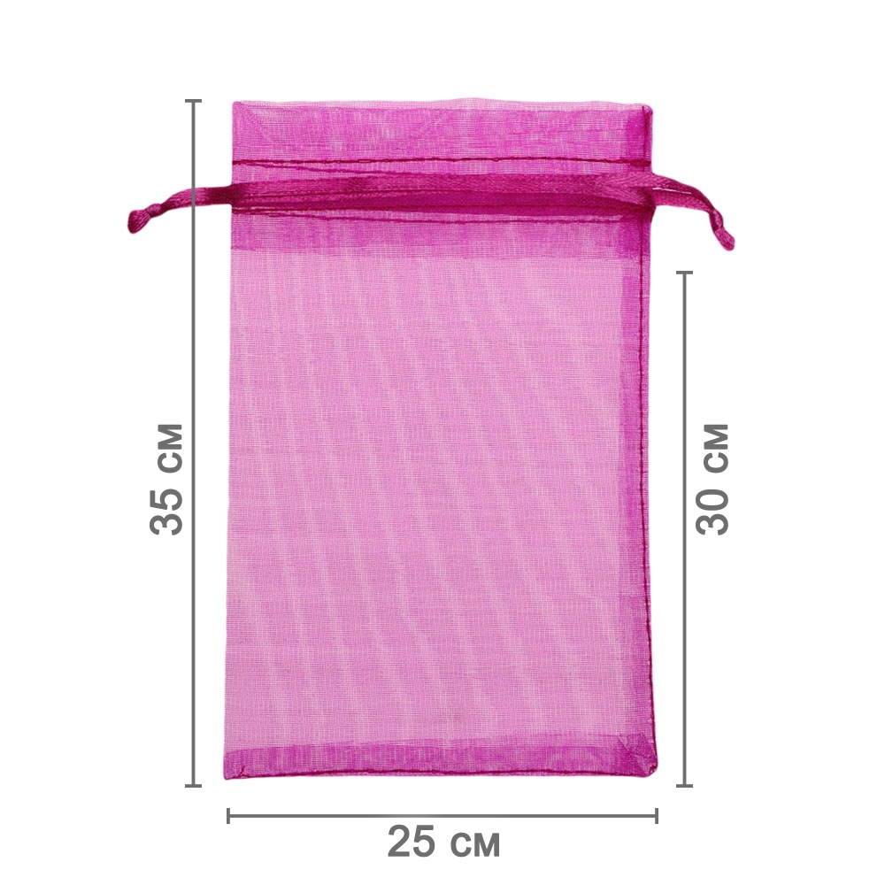 Мешочек из органзы 25 х 35 см — практичный аксессуар для упаковки крупных предметов и подарков. Лёгкая ткань подчёркивает содержимое и придаёт праздничный вид.