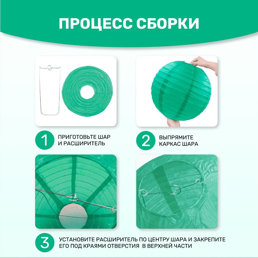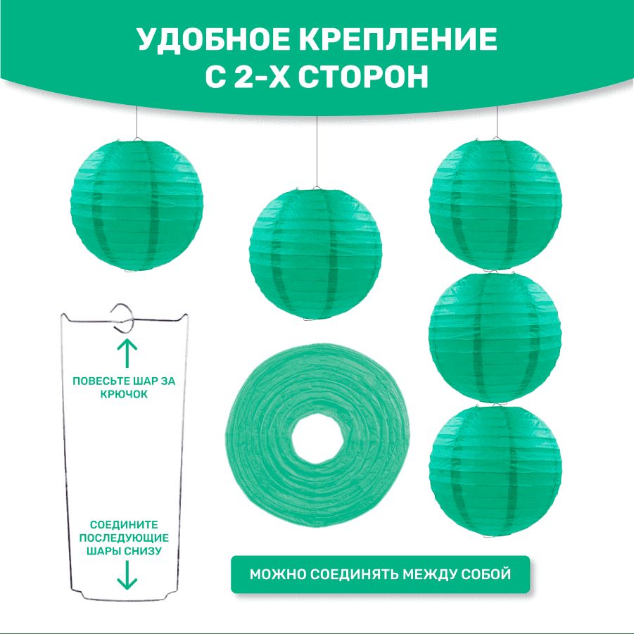 В комплект входит 8 бумажных фонариков и лента атласная.